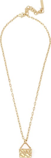 A bag-signature bag is rendered as a pendant in this golden necklace that adds playfulness to your stack.