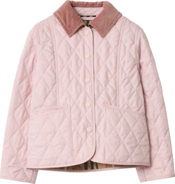 A quilted jacket in a classic navy colourway, topped with a tonal corduroy collar. The design is lined in our signature Burberry Check.||Press-stud closure|Side patch pockets|Burberry Check undercollar and lining