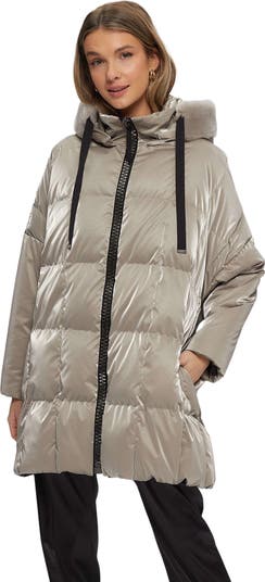 This quilted parka combines insulated warmth with a plush Genuine Shearling hood trim, offering stylish protection and a touch of luxe for chilly days.