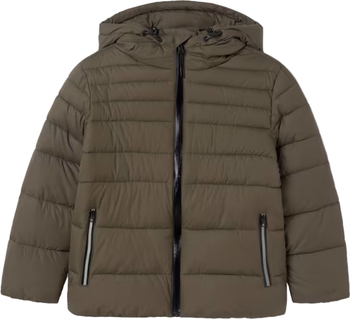 - Brown puffer jacket with horizontal quilting