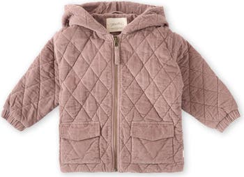 This adorable hooded jacket made from quilted corduroy and lined for comfort is a perfect lightweight layer for the outdoors.