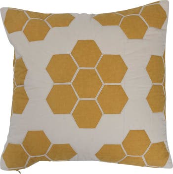 - This playful throw pillow showcases supple, quilted cotton with a bold honeycomb pattern