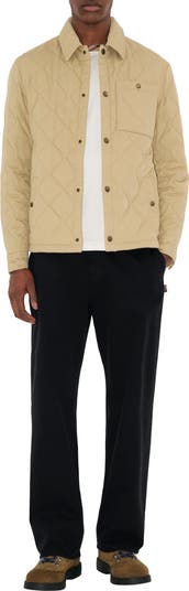 A quilted overshirt made from shower-resistant cotton gabardine woven at the Burberry Mill. The style is cut to a regular fit and finished with logo-embossed press studs. Burberry Check lines the design in our signature sand beige colourway.||Press-stud closure|Point collar|Chest press-stud patch pocket, side press-stud welt pockets|Press-stud cuffs|Equestrian Knight Design tab at side|Burberry Check lining and undercollar