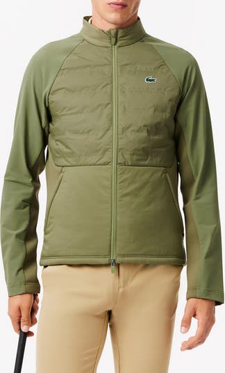 Light insulation and a soft, stretchy shell keep you swinging comfortably in a golf jacket designed with a higher neck for extended coverage in the cold and fleece-lined pockets for warming your hands.