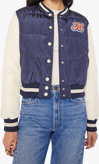MOTHER combines two classic jacket styles—the puffer and letterman—in this sporty-cool look that's the perfect layer for transitional weather.