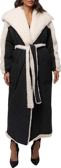 This longline coat keeps you and your outfit protected while you enjoy a night out and is highlighted by plush high-pile fleece for an added dose of cozy warmth.