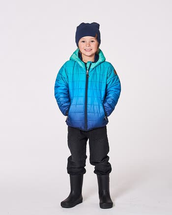 Designed for warmth in mid-season temperatures, this transitional outerwear piece is coated for dirt and water repellency and loaded with functional details. The quilted horizontal baffles are filled with lightweight polyfill insulation for wearing in chilly temperatures, while an attached hood and zip front closure provide added protection and keep the cold out. Diagonal zipper pockets offer added function.