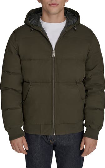 A classic bomber silhouette brings laid-back cool to this quilted puffer jacket popped with a hood to protect you in all kinds of weather.