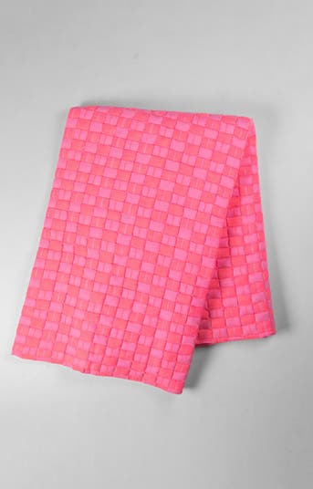 These gorgeous handwoven quilted blankets hail from Gujarat India where only three families are left making this specialized weaving style that dates back to the 1860s. Each square is hand stuffed with cotton batting as its woven. The size is perfect for a sofa or chair throw blanket. Poly-cotton blend.