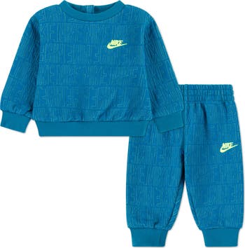 An allover quilted wordmark logo adds sporty charm to this comfy set featuring a sweatshirt and joggers made from a soft fabrication.