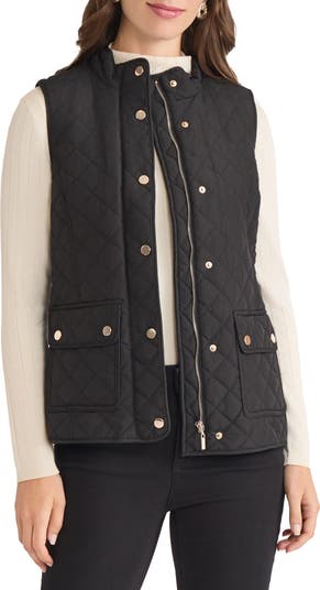 Get prepped for the between season with a low-profile quilted vest available in all your favorite colors. An elasticated back waist streamlines the silhouette.