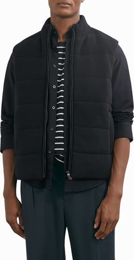 A ribbed stand collar frames this cozy quilted vest that adds cool, contemporary style to any layered outfit.