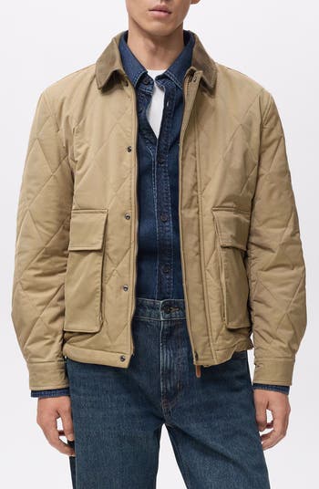 This diamond-quilted jacket balances clean lines with everyday function. Cut in a straight silhouette from technical water-repellent fabric, it features a crisp spread collar, flap pockets and a hidden zip with button storm placket. It's finished with a smooth lining for a polished, practical layer.