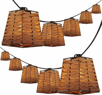 Add instant lighting to your patio, deck or balcony with our classic shade outdoor string lights. Each has 10 lights spaced 12" apart along a 10' cord, with woven shades. Leave them up at the coastal cottage for entertaining outside, or keep them up all year in mild climates.
