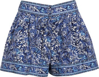 Sharp pleats accent these shorts cut from breezy cotton and covered in a swirling floral print.