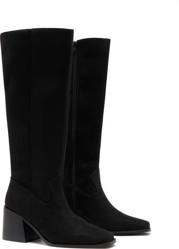 A tall boot is a style essential this season and we're loving the Quinn Boot by Therapy. Featuring a flared block heel, sleek square toe and full length zip details plus an elastic gusset for fit, these will soon become your favourite, everyday boot. The Quinn boot is perfect to pair with your latest suede coat, bomber jacker and a mini or shorts.
