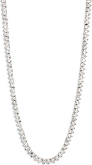 A brilliant line of three-pronged cubic zirconia lights up this classic tennis necklace that adds a luxe touch to any look.