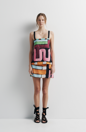 Quinn is a fully lined, straight-neck top finished with an invisible side zip and extended strap detail at the back. Features hand painted Summer '26 print.