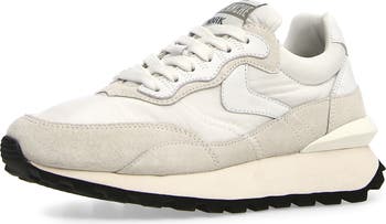 Mixed-media paneling and zigzag stitching accentuate the playful dimensionality of this street-savvy sneaker grounded on toothy treads.