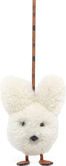 Rabbit charm in lamb fur with Visetos canvas trim and leather strap
