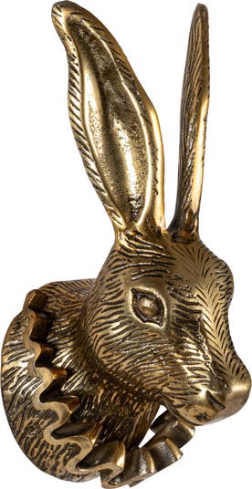 - An elegant cast aluminum rabbit head with a ruff collar in an antique brass finish
