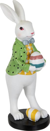 Add a whimsical touch to your outdoor space with this rabbit and Easter egg statue. The rabbit is dressed in his Sunday best symbolizing the joy and renewal of the spring season. This enchanting figure captures the charm and magic of Easter, making it a delightful addition to your garden, patio, or front porch. Product Features: Dapper rabbit with Easter eggs garden figure Created with intricate details Made from weather resistant material Recommended for indoor or outdoor use Dimensions:11.5”H x 4“W x 5“D Material(s): polyresin