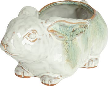 - A charming countryside accent, this stoneware rabbit planter features a reactive glaze in soothing blue and white