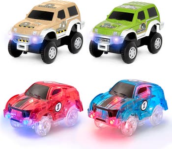 Add extra fun to your playtime with our unique set of themed battery-powered vehicles! Included in this kit are two fantastic Jungle Safari Jeeps and a light-up lightspeed Racing Car!Play right out of the box, each vehicle is push-able and when batteries are inserted, drive themselves around! They make a perfect extra addon pieces for our race track sets, front counters displays or a great value pack set for car-loving kids.Each set comes with customizable decals so kids can create unique designs for their vehicle and parents enjoy their child's growing imagination. Decorate, assemble and race at home, outside or in your own grand prix with this dynamic trio of JitteryGit's favorite racers! Able of racing on top of furniture, rugs, tables, ground, sand and more to make unique racing playtime anywhere you go!