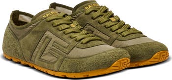 Racer 45 trainers in aged suede and ripstop nylon Lace fastening Balmain Paris logo printed on the tongue Large PB logo integrated into the sides PB notched rubber outsole Balmain Paris-embossed leather insole Main material: 100% calfskin Made in France Item: GM0VI408TRNC