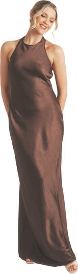 Modern, minimal, and made to make a statement, this hammered luxury satin dress brings just the right amount of drama. With its sleek racer neckline, halter tie fastening and elasticated back to provide give, its the perfect mix of style and comfort. A great pick for bridesmaids who want something a little different - but still timeless.