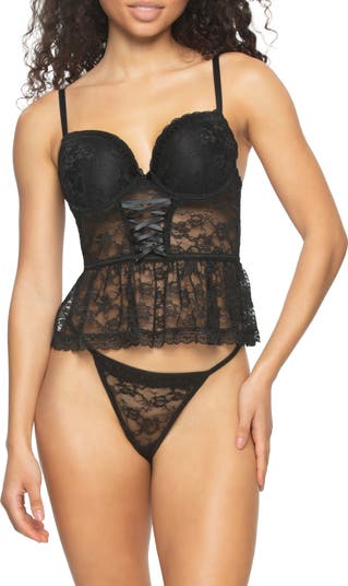 An underwire bustier skims your curves and antes up the flirt factor with corset laces just beneath the bust.