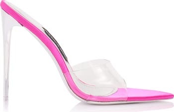 - Heel height 120MM Transparent PVC strap – creates a barely-there illusion for a modern, versatile look. Slip-on mule design – easy to wear and effortlessly chic. Pointed toe – sharpens the silhouette for a sleek, elongated appearance. Slim stiletto heel – provides height and elegance. Lightweight construction – comfortable for extended wear. Available in multiple colors