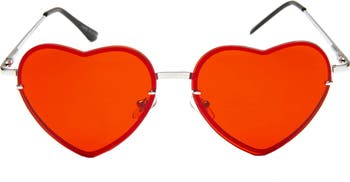 You'll fall hard for rose-tinted sunglasses that feature a playfully chic heart-shaped frame and flat-front lenses.
