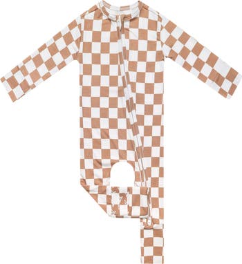 A cozy footie is knit from ultrasoft stretch-jersey, patterned in crisp two-tone checks and equipped with a two-way front zipper for easy outfit changes and diaper checks