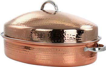 Radiance 17.5 Inch Stainless Steel Copper Plated Oval Roaster with Lid and Roasting Rack