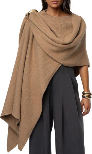 Wrap yourself in the warmth and sophistication of this cozy shawl accented with golden hardware.