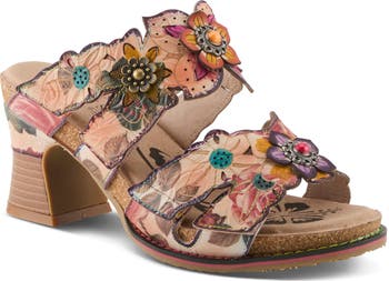 A hand-painted leather upper and antique brass hardware lend an ornate look this flowery sandal set on a cushioned cork footbed for daylong comfort.