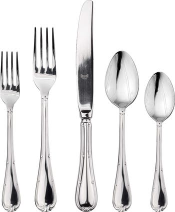 Introducing the Raffaello Collection of flatware – a symphony of Italian craftsmanship. Crafted in Italy from the finest 18/10 stainless steel, each piece features a substantial 4.0mm thickness for exceptional durability and ergonomic comfort. The knives, equipped with double serration for enduring sharpness, effortlessly combine elegance with practicality, and the entire collection is dishwasher safe, promising both refined dining and easy maintenance.