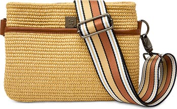 This compact raffia bag with two different straps, so you can wear it as a shoulder style or crossbody, is perfect for carrying small essentials.