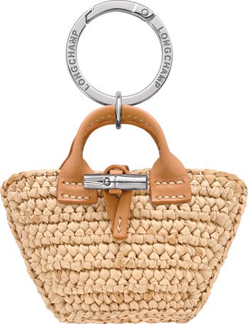 A small raffia bag charm adds a signature touch to your favorite handbag.