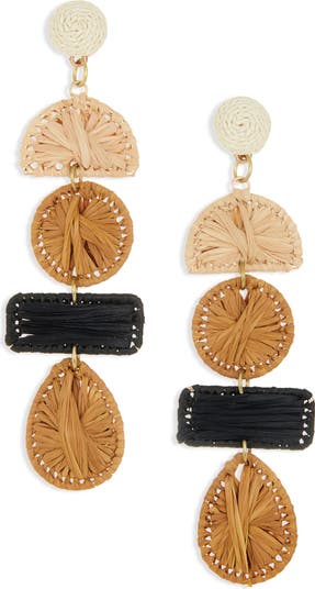 Sweeten a summery look with dangling earrings crafted in colorful raffia.