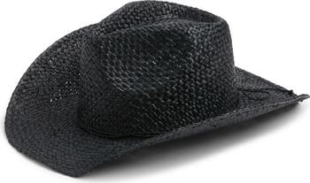 Lightweight raffia brings warm-weather appeal to this cowboy hat lassoed with narrow braided trim.