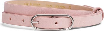A tiny engraved logo details the high-shine oval buckle of this wardrobe-essential belt made from buttery-smooth calfskin leather.