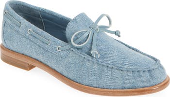 Denim composition brings a laid-back element to this comfortable and classic boat shoe.