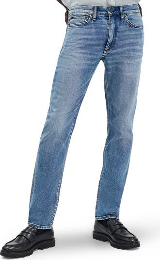 Narrow and tailored from hip to hem, these jeans are cut from Authentic Stretch denim in a vintage-inspired light wash with whiskering and starbursts.