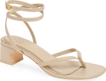 A center toe post and wraparound ankle strap offer a stylish and secure fit on a sleek leather sandal set on an OrthoLite® footbed and modest block heel.