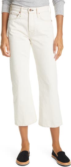 Organic-cotton denim in an off-white wash brings rustic, hardworking style to cropped, high-rise flare jeans sewn with darker thread for a bit of dimension.