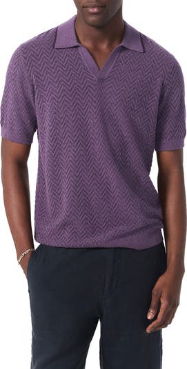 Cotton-blend terry cloth styled with a subtle chevron texture brings distinctive comfort to this polo that's cut for a relaxed, roomy fit.