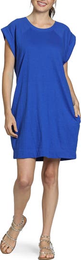Perfect for off-duty days, this comfortably relaxed shift dress is cut from slubbed cotton jersey and framed by cuffed cap sleeves and handy pockets.
