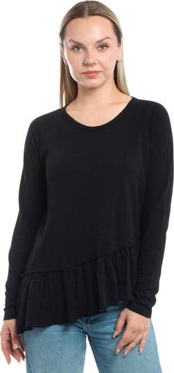 Raglan Long Sleeve Tee with Asymmetric Peplum Hem A fresh take on a wardrobe essential, this tee blends casual comfort with feminine flair. Designed in our signature slub fabrication, it’s the perfect balance of effortless and elevated. Raglan long sleeves for a relaxed fit and ease of movement Asymmetric peplum hem for a flattering, fashion-forward silhouette Crafted in our signature slub fabric for texture and softness Versatile piece—dress it up or keep it casual.